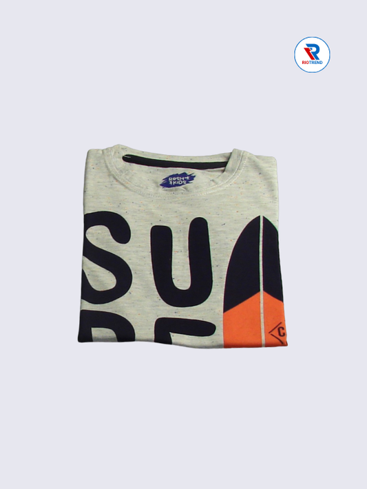 Boys' Round Neck Cotton Half Sleeve Cream T-Shirt