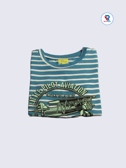 Boys' Round Neck Cotton Half Sleeve Little Pilot Aviation T-Shirt
