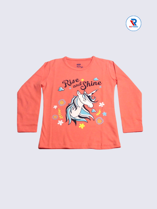 Girls Cotton Full Sleeve T-Shirt Salmon
