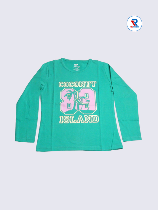 Girls Cotton Full Sleeve T-Shirt Seafoam Green Color