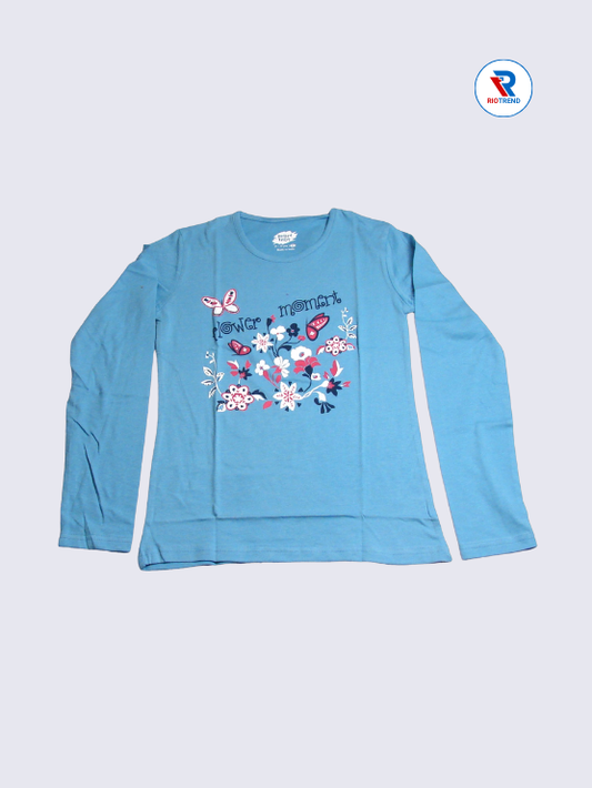 Girls Cotton Full Sleeve T-Shirt Powder Blue