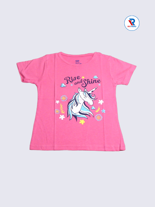 Girls Cotton Half Sleeve Mauve Color with Design T-Shirt