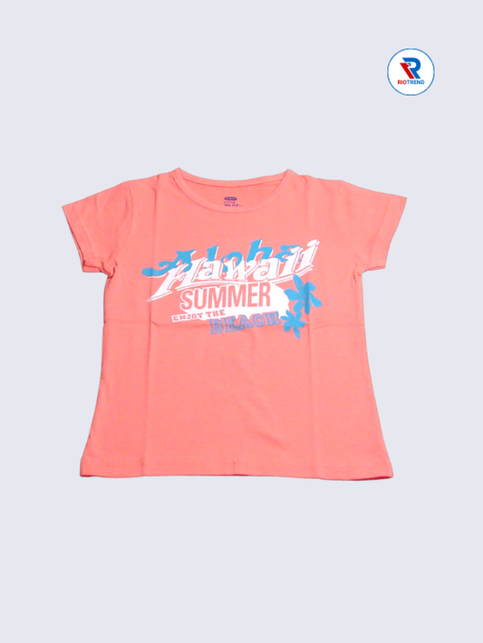 Girls Cotton Half Sleeve Red Color with Design T-Shirt