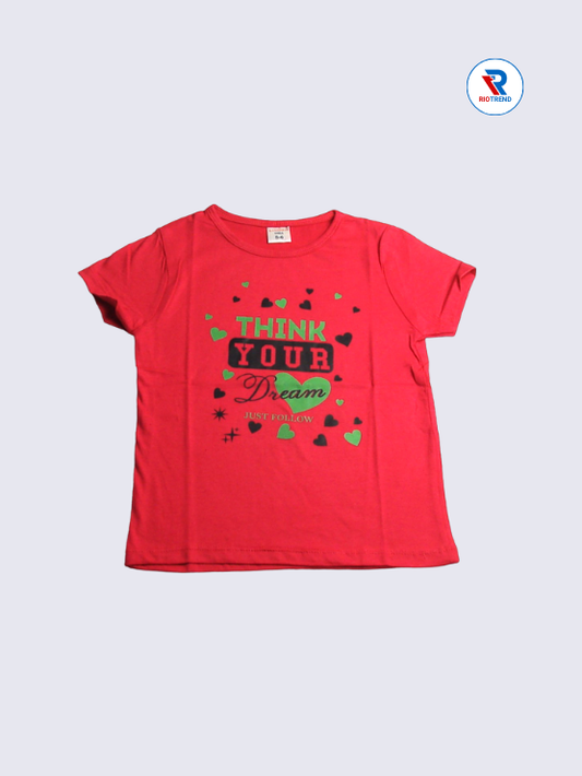 Girls Cotton Half Sleeve T-Shirt Red Color