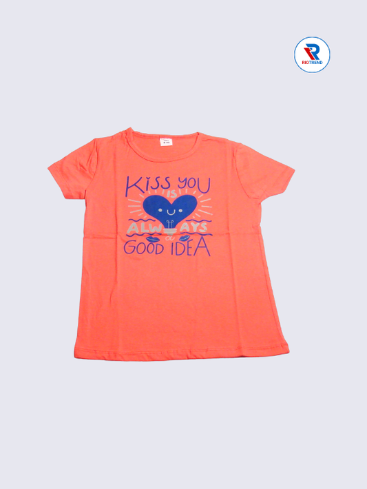 Girls Cotton Half Sleeve T-Shirt Coral Color