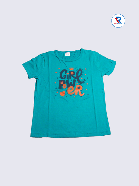 Girls Cotton Half Sleeve T-Shirt Cyan Color