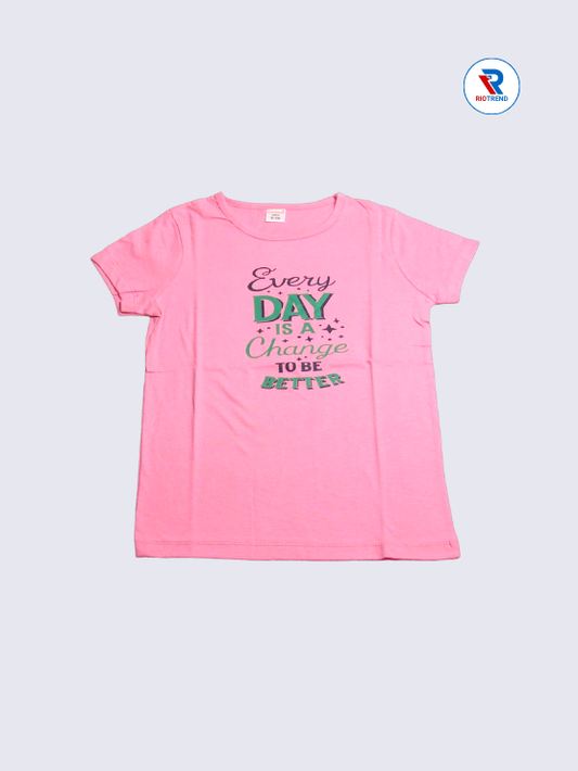 Girls Cotton Half Sleeve T-Shirt Pink Color