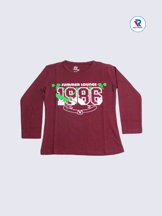 Girls Full Sleeve Cotton T-Shirt Deep Ruby Color