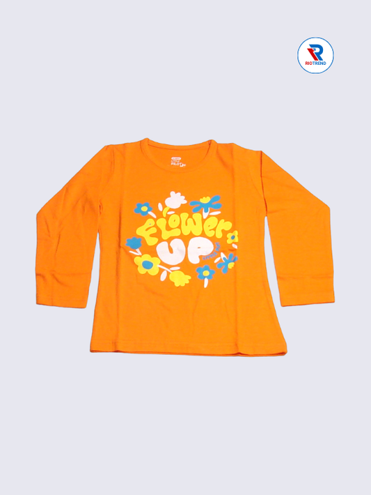 Girls Full Sleeve Cotton T-Shirt Vivid Orange Color