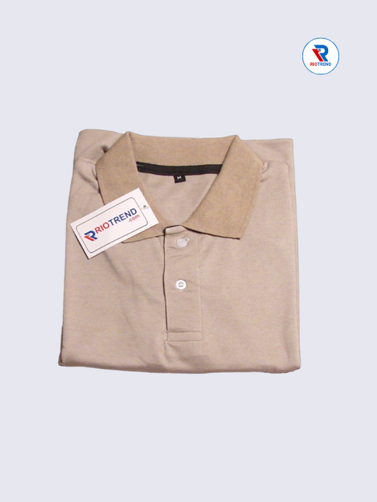 Men's Polo Collar Cotton T-Shirt Cream Color