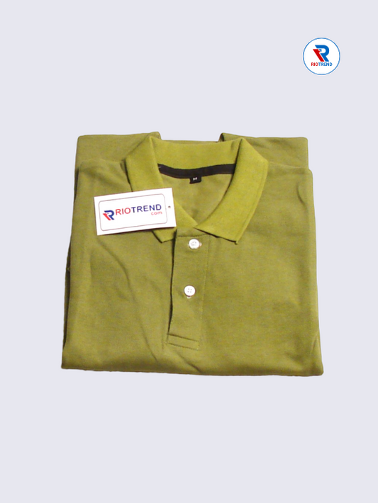Men's Polo Collar Cotton T-Shirt Cream and Green Combo (Pack of 2)