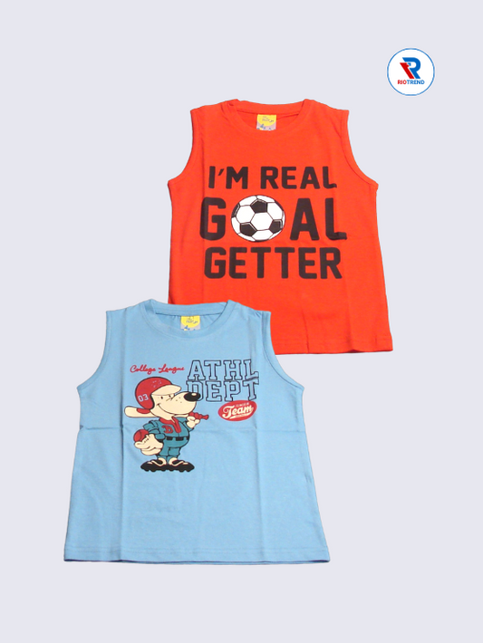 Boys Sleeveless Cotton T-Shirt Combo (Pack of 2) - Trendy Blue and Brown Color
