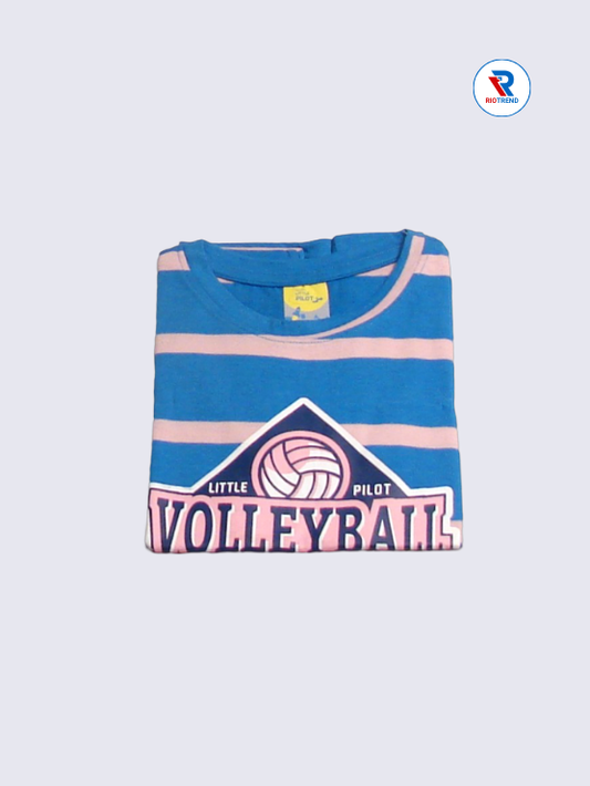 Boys' Cotton Half Sleeve T-Shirt Coral & Blue