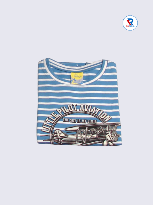 Boys' Cotton Half Sleeve T-Shirt Blue & White