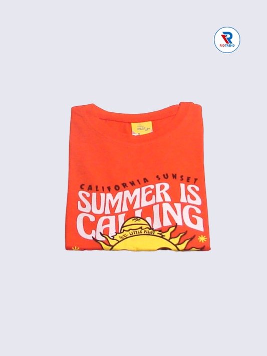 Boys' Cotton Half Sleeve Red Orange