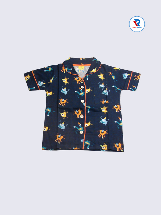 Girls Night Suit Set: Top and Pyjama Pants in Dark Deep Blue
