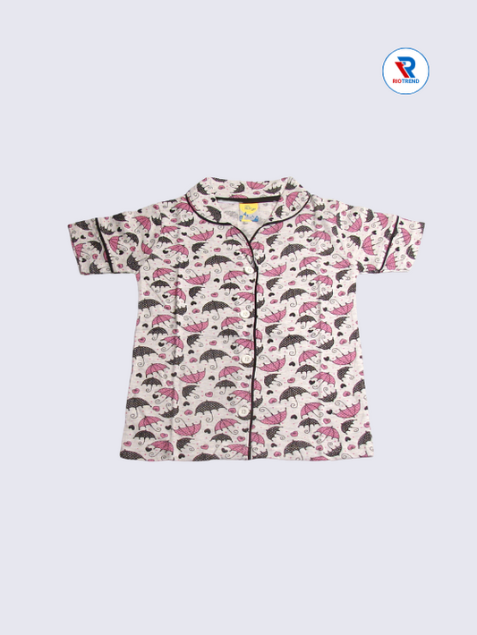 Girls Night Suit Set: Light Pink Top and Pyjama Pants