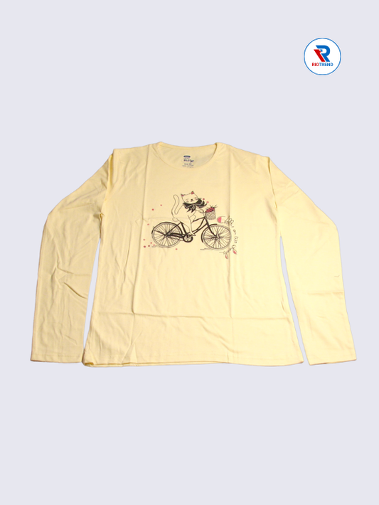 Girls Cotton Full Sleeve T-Shirt Flaxen Color
