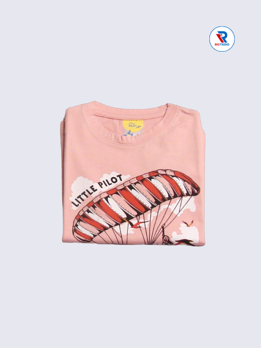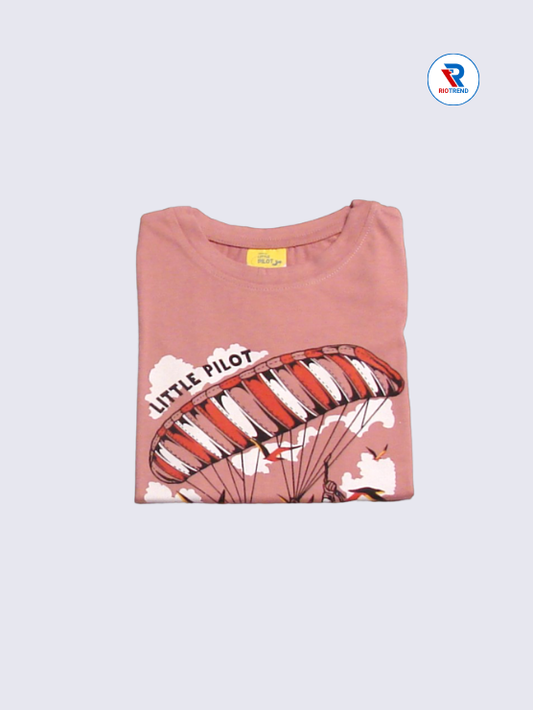Boys' Round Neck Cotton Half Sleeve Coral Pink