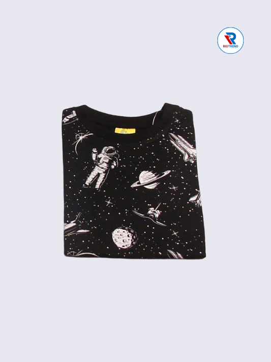 Boys' Round Neck Cotton Half Sleeve Black