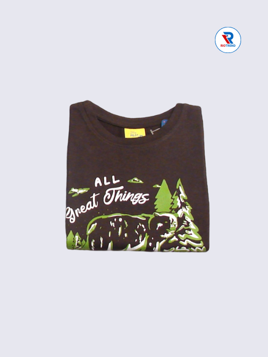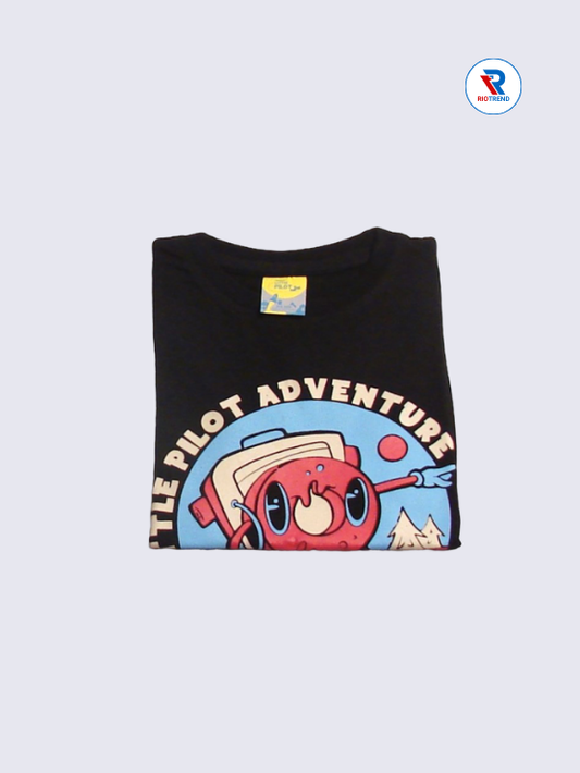 Boys' Round Neck Cotton Half Sleeve Black Little