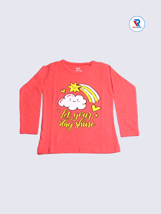 Girls Cotton Full Sleeve T-Shirt Dark Coral Pink Color