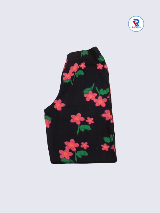 Girls Jeggings Pant Black Flower Design