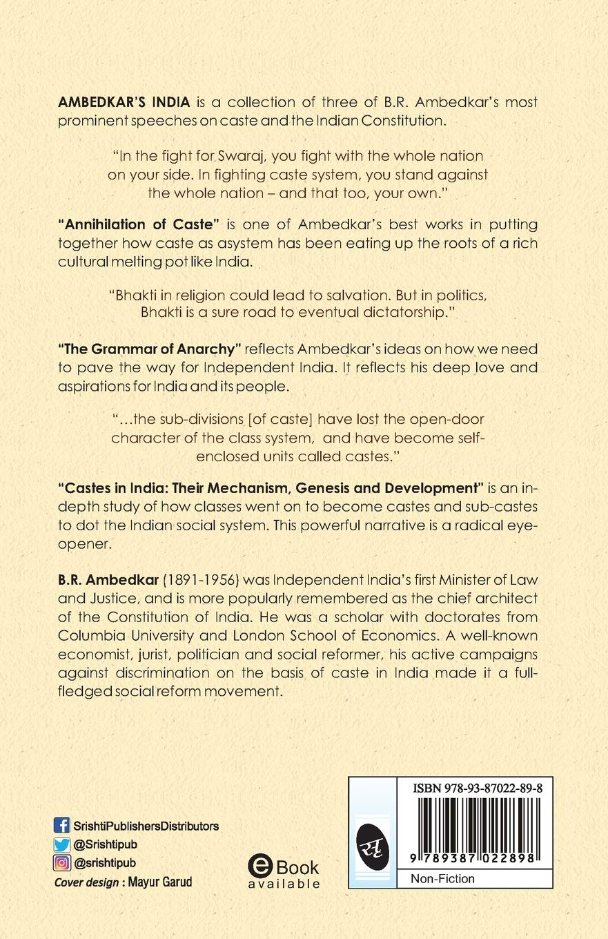 “Bhakti in religion could lead to salvation. But in politics, Bhakti is a sure road to eventual dictatorship.” “The Grammar of Anarchy” reflects Ambedkar’s ideas on how we need to pave the way for Independent India. It reflects his deep love and aspirations for India and its people. “…the sub-divisions [of caste] have lost the open-door character of the class system, and have become self-enclosed units called castes.” “Castes in India: Their Mechanism, Genesis and Development” is an in-depth study of how classes went on to become castes and sub-castes to dot the Indian social system. This powerful narrative is a radical eye-opener.