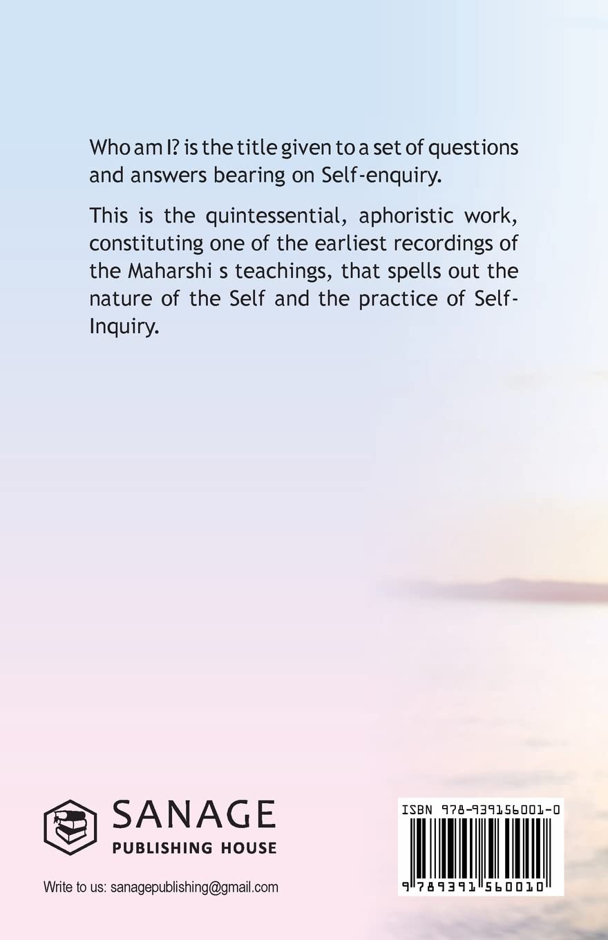 Who am I? is the title given to a set of questions and answers bearing on Self-enquiry. This is the quintessential, aphoristic work, constituting one of the earliest recordings of the Maharshi s teachings, that spells out the nature of the Self and the practice of Self-Inquiry.
